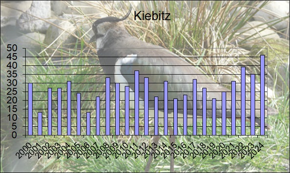 In der Grafik ist die Bestandsentwicklung des Kiebitz im Landkreis seit 2000 dargestellt.